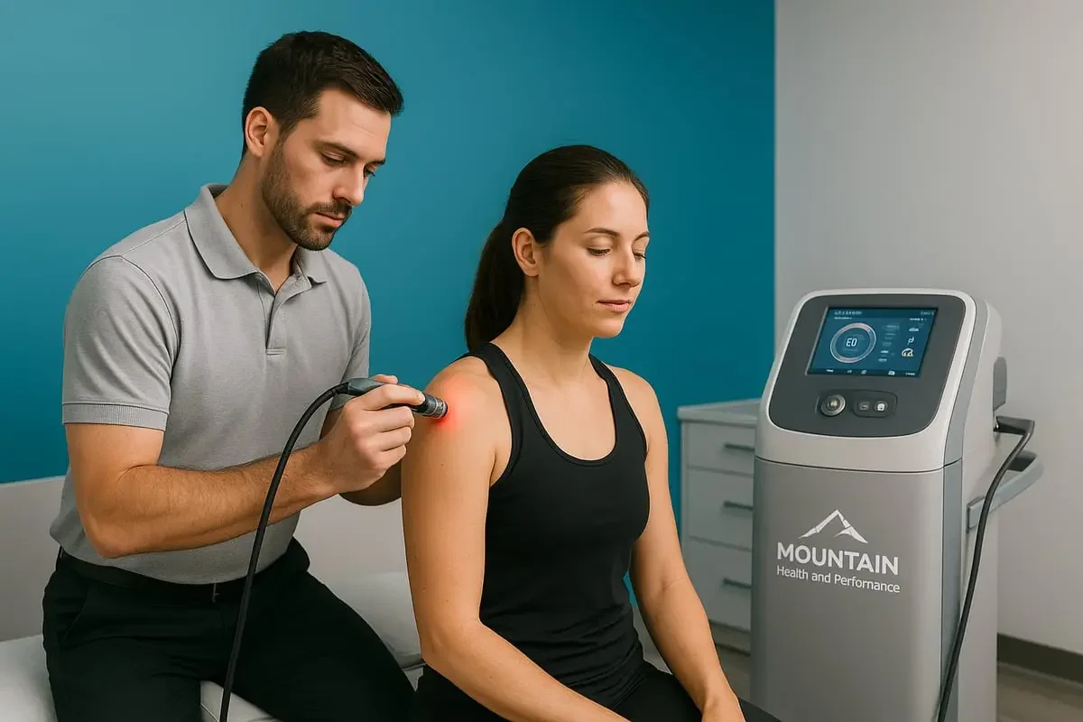 Laser therapy treatment is frequently recommended at Mountain Health and Performance as part of a multidisciplinary plan, offering cost-effective and insurance-supported care for musculoskeletal injuries.